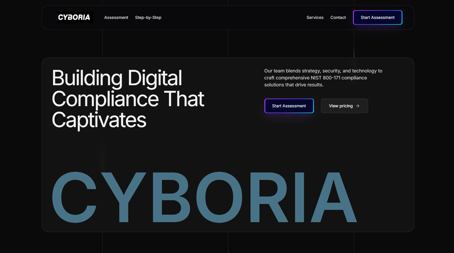 We built Cyboria, a fully automated CMMC compliance platform powered by AI. The system walks organizations through a guided assessment flow covering CMMC 1.0, CMMC 2.0 (NIST 800-171), and CMMC 3.0. Users answer straightforward questions mapped to each control, and the AI engine handles the rest.